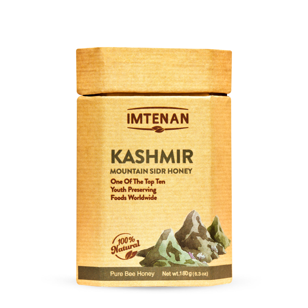 Pure Kashmir Mountain Sidr Honey (100% Natural) from Imtenan One of the top ten youth preserving food worldwide produced from the nectar of Sidr flowers in Kashmir Mountains .