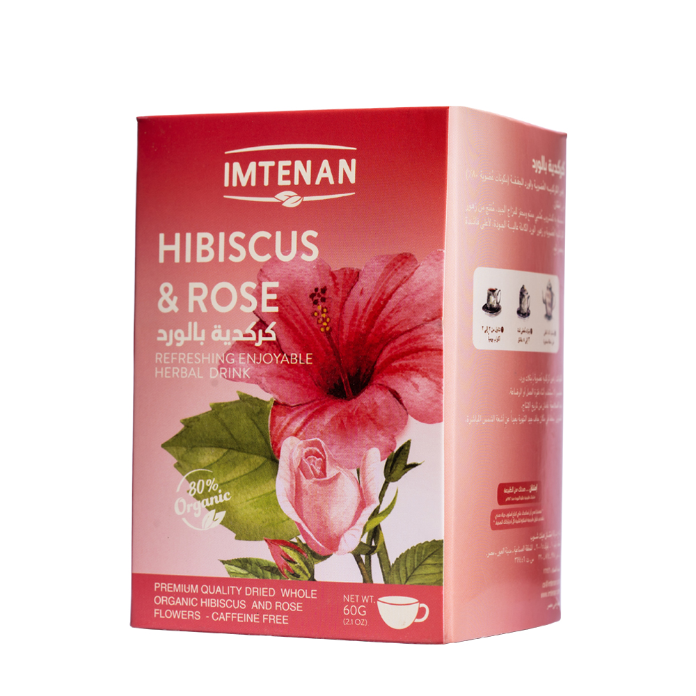 Hibiscus with rose tea is a delightful herbal drink that enhances mood, made from organic hibiscus flowers and rose petals.