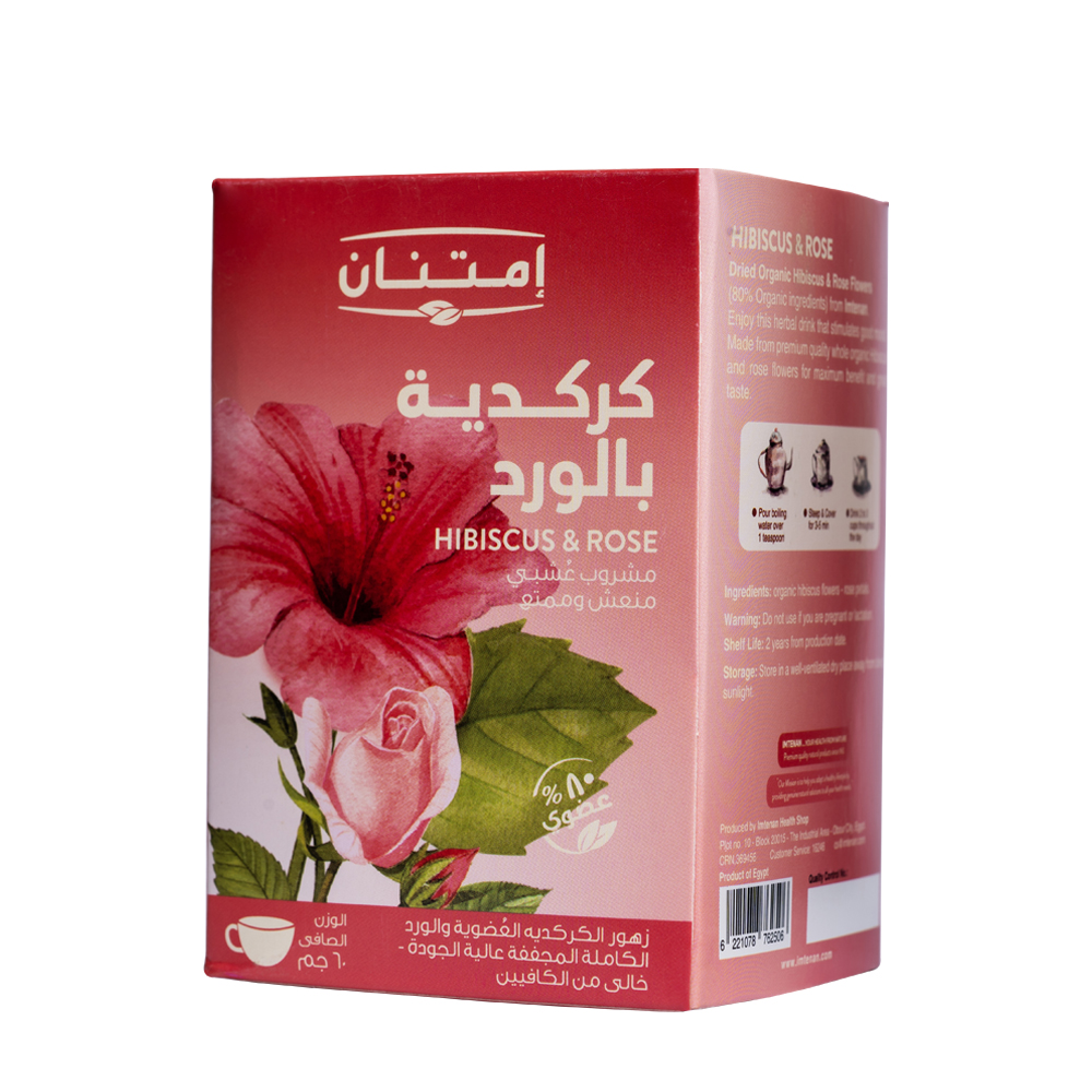 Hibiscus with rose tea is a delightful herbal drink that enhances mood, made from organic hibiscus flowers and rose petals.