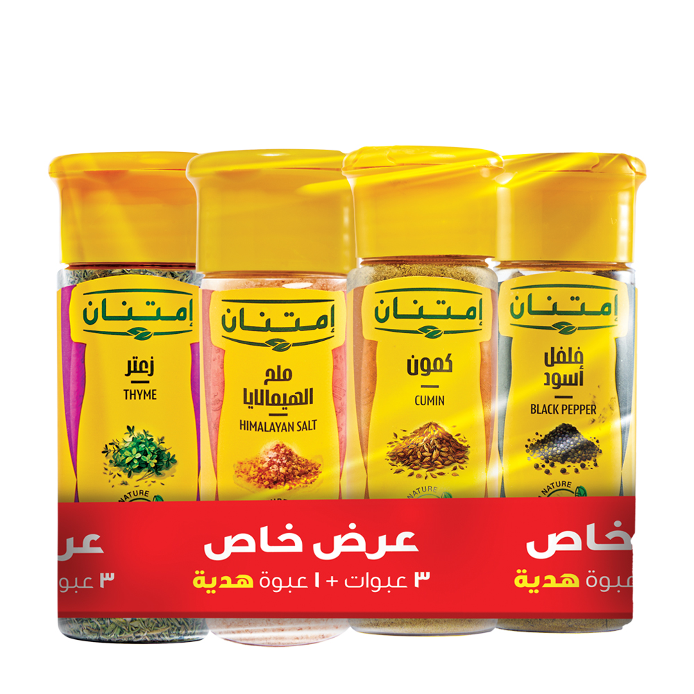 Sale Spices offer (Black Pepper 75 g + Cumin 65 g + Himalayan Salt 130 g + Thyme 25 g) 191.60 EGP 239.00 EGP ADD TO CART
